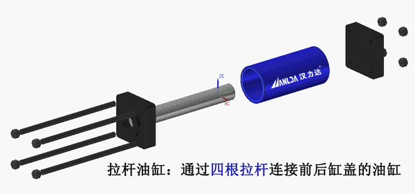 拉桿液壓缸靠螺絲桿連接前后缸蓋,小缸徑時(shí)為四根螺絲桿,大缸徑會(huì)加多螺絲桿的數(shù)量來(lái)保證油缸的耐壓性,比如6根、16根,甚至20根。
